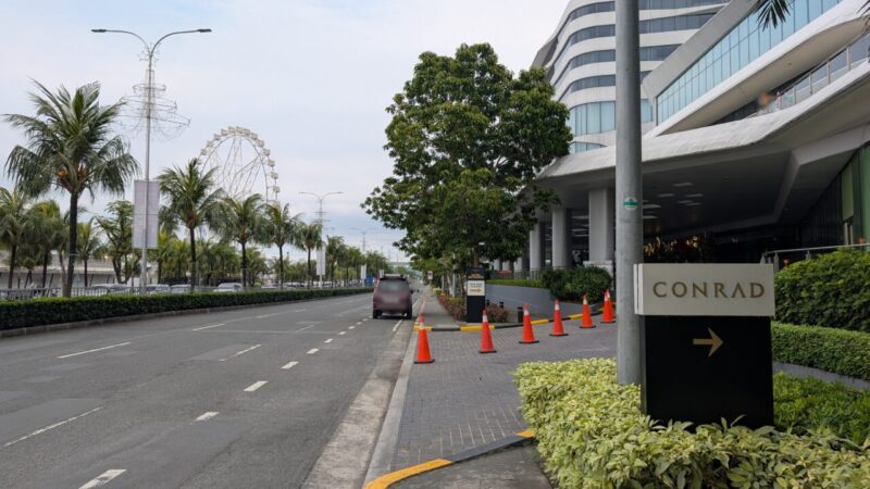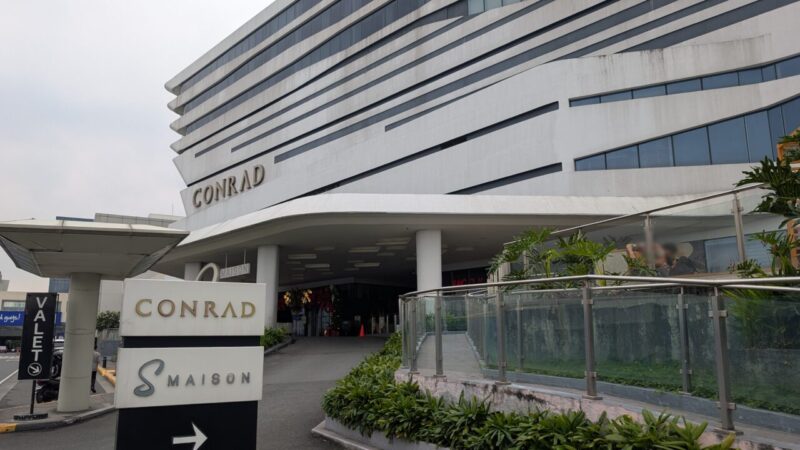 エントランス脇には「CONRAD MANILA」の銘板が設置。