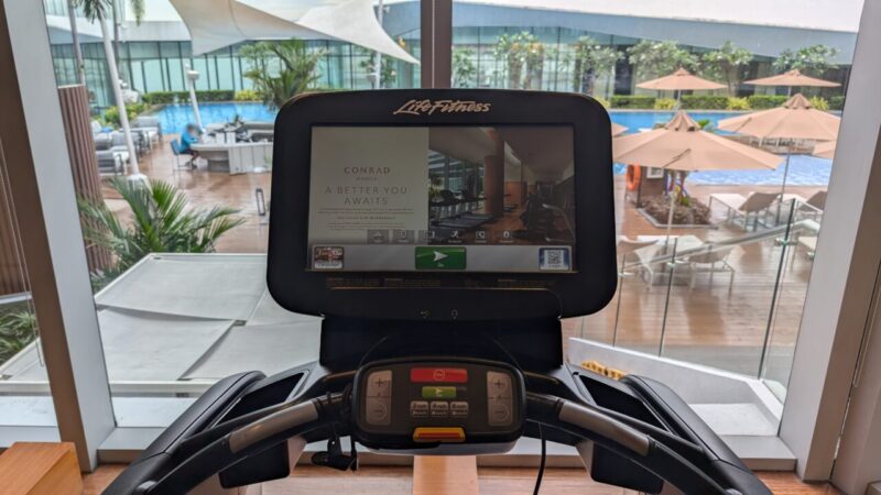 トレッドミル(ランニングマシン)からの眺めはプール。