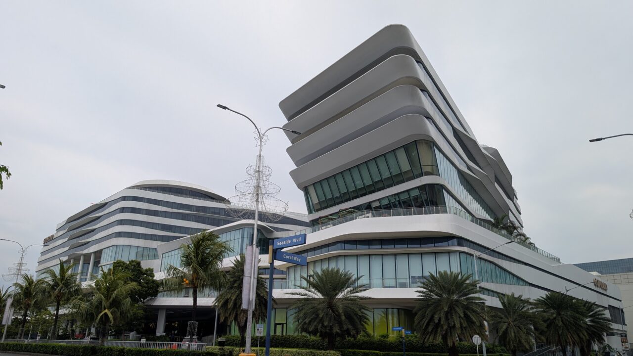 コンラッド マニラは、マニラ湾沿いの再開発エリアに建つ、
