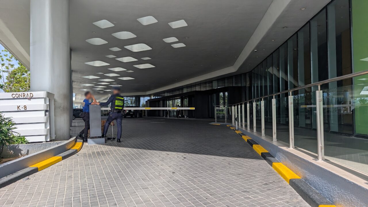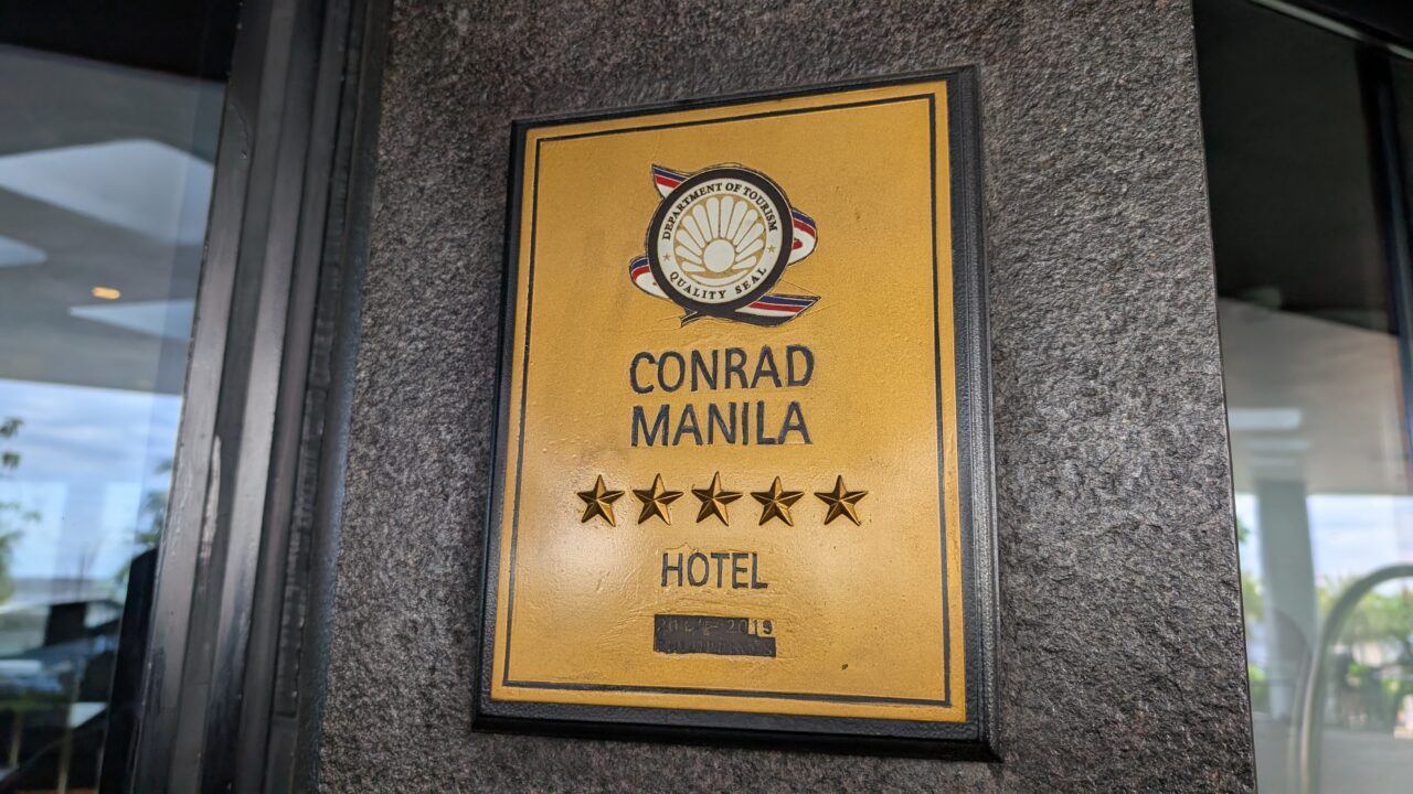 エントランス脇には「CONRAD MANILA」の銘板が設置。