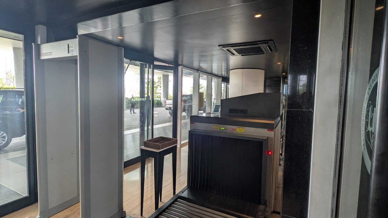 ウェルカムロビー入口でセキュリティチェックが行われます。