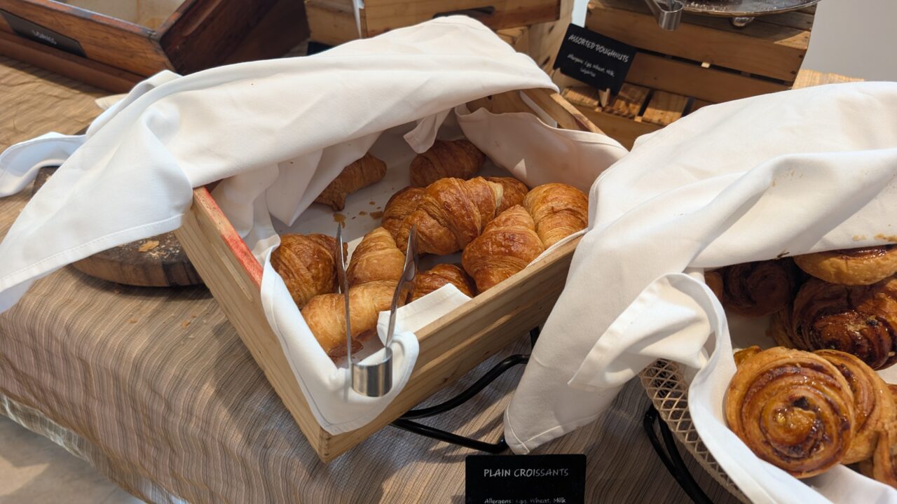 ラウンジとレストランの両方から選べる朝食特典などは、