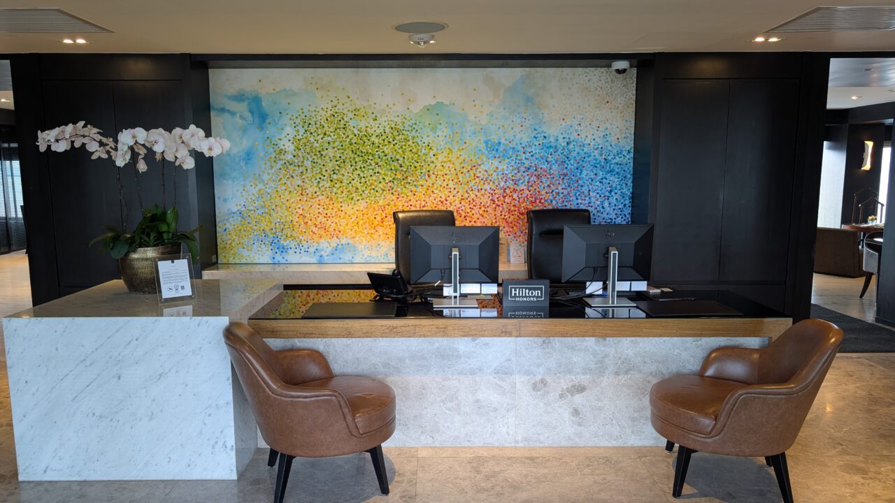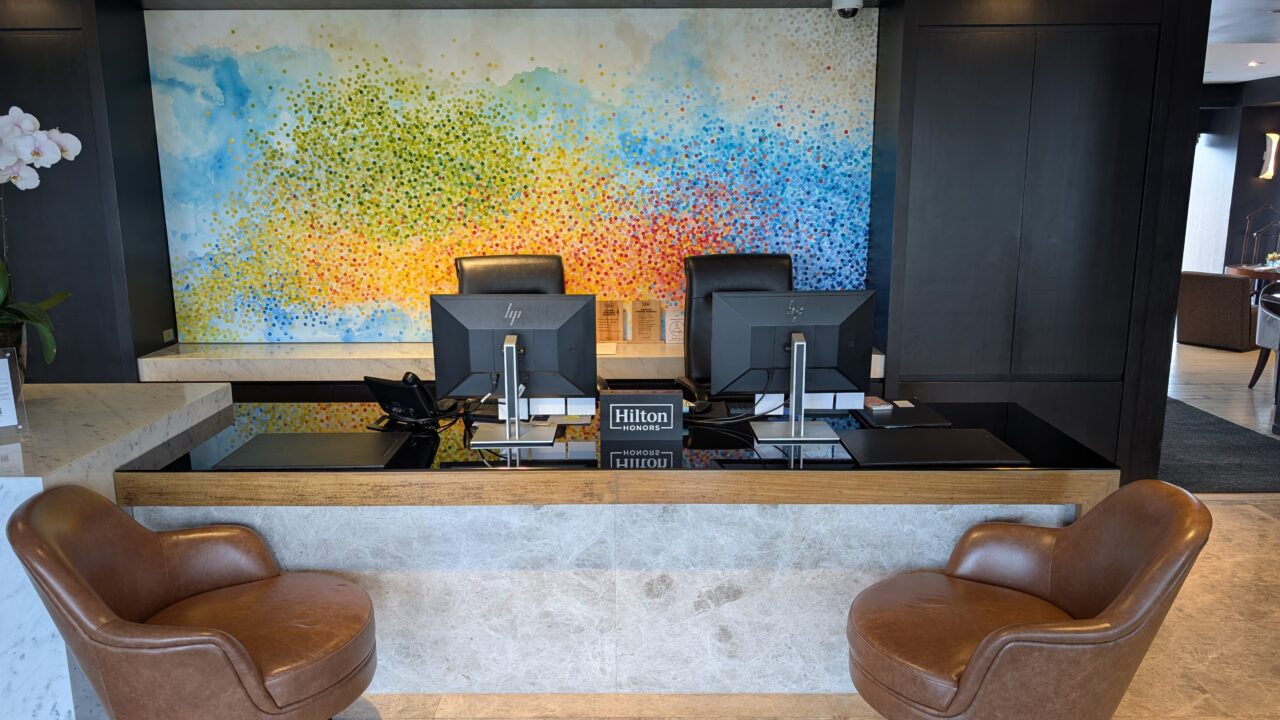背後には色彩豊かなアートが配され、メインロビーとはまた違った、