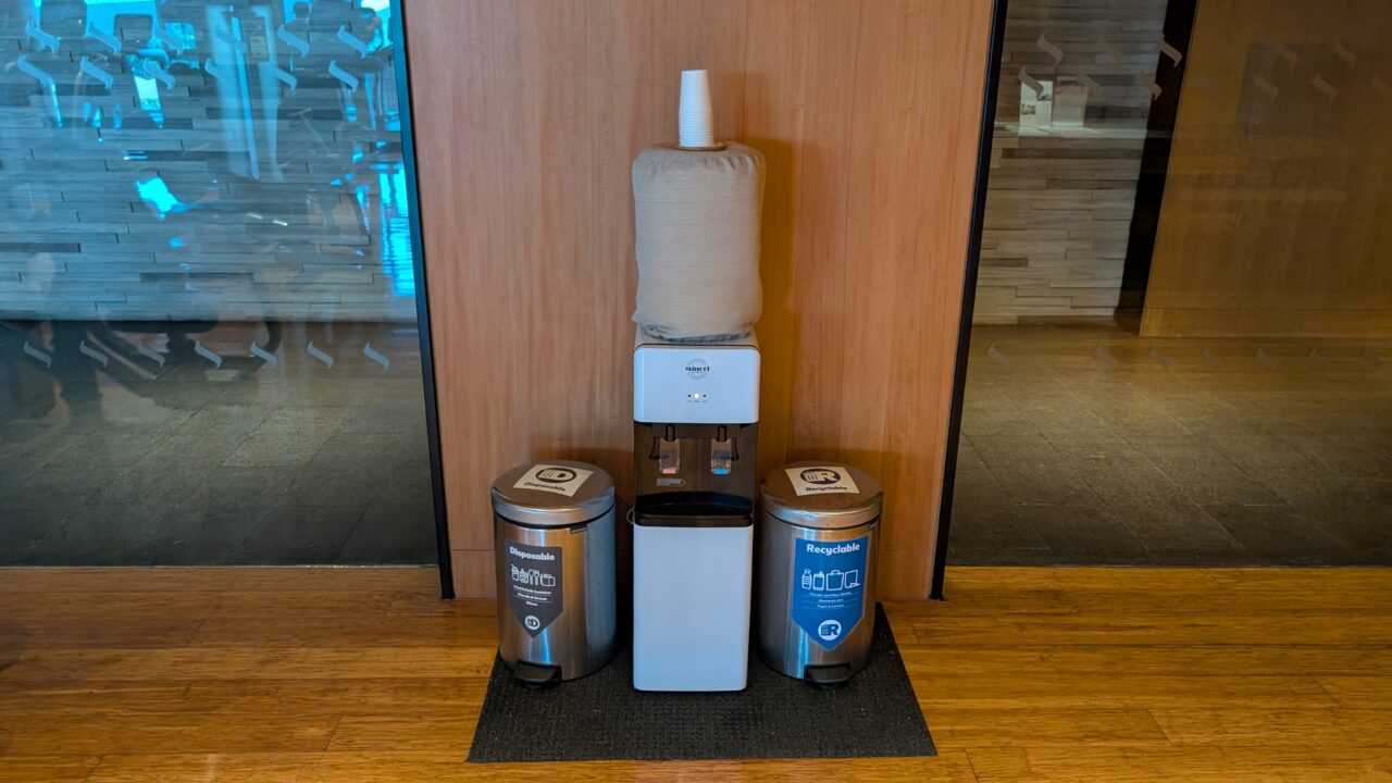 トレーニングの合間にすぐ水分補給が可能。紙コップもあり。