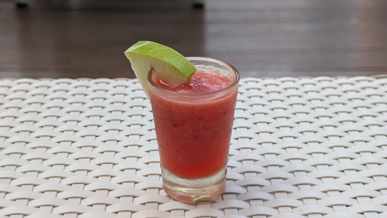 ふいにスタッフが近づいてきて、小さなショットグラスをそっと差し出してくれます。