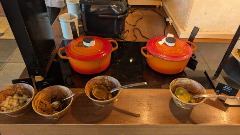 和食コーナーには、鍋に入ったカレーとスープもあります。
