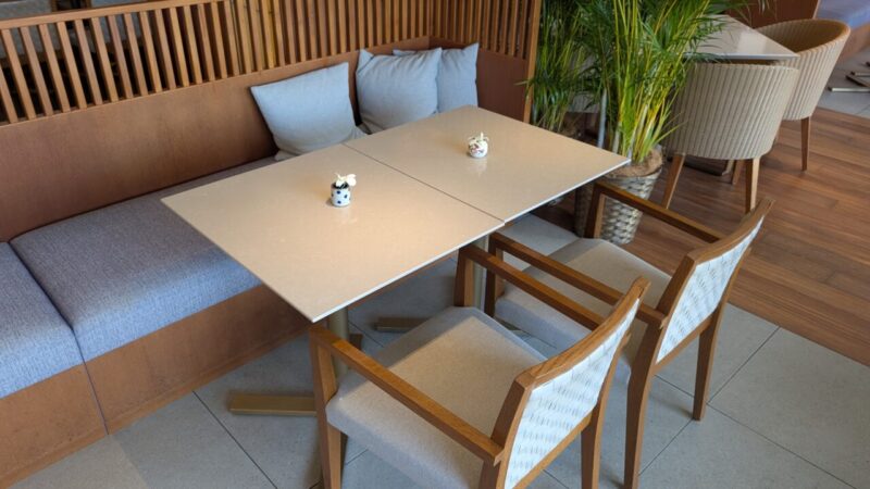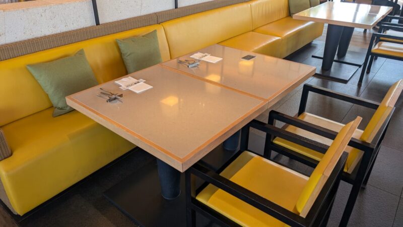 リージェンシークラブに入ると、まずは席に案内されます。チェックインはカウンターでもできますが、席に座ったまま手続きを進めることもできます。テーブル席やソファ席がいくつかあり、チェックインのときは好きな席に案内してもらえることが多いです。