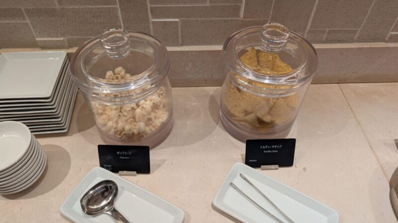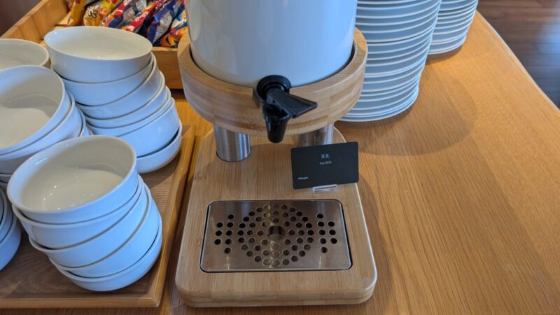 温かい飲み物はコーヒーと紅茶。保温ポットに入っているので、自分で注ぐセルフスタイル。ちょっと残念だったのが、保温ポットのお湯がぬるい。おいしいお茶が淹れられません。
