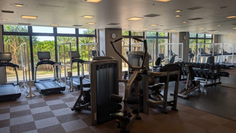 個人的には、普段使うマシンが一通り揃っているので、滞在中のワークアウトにも困りません。