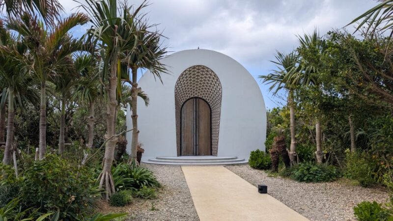 屋外プールのすぐ横には、白いドーム型のチャペルがあります。