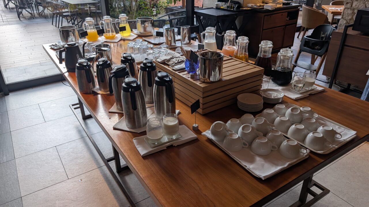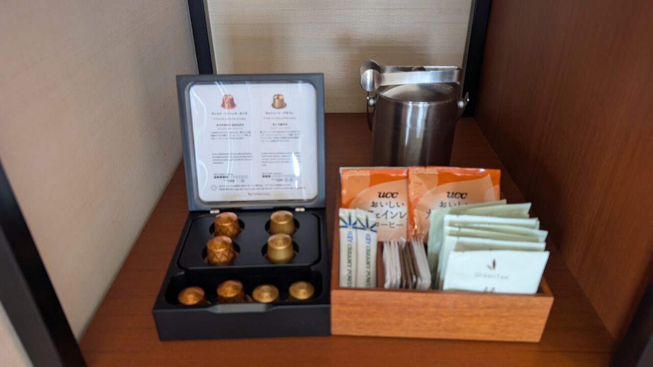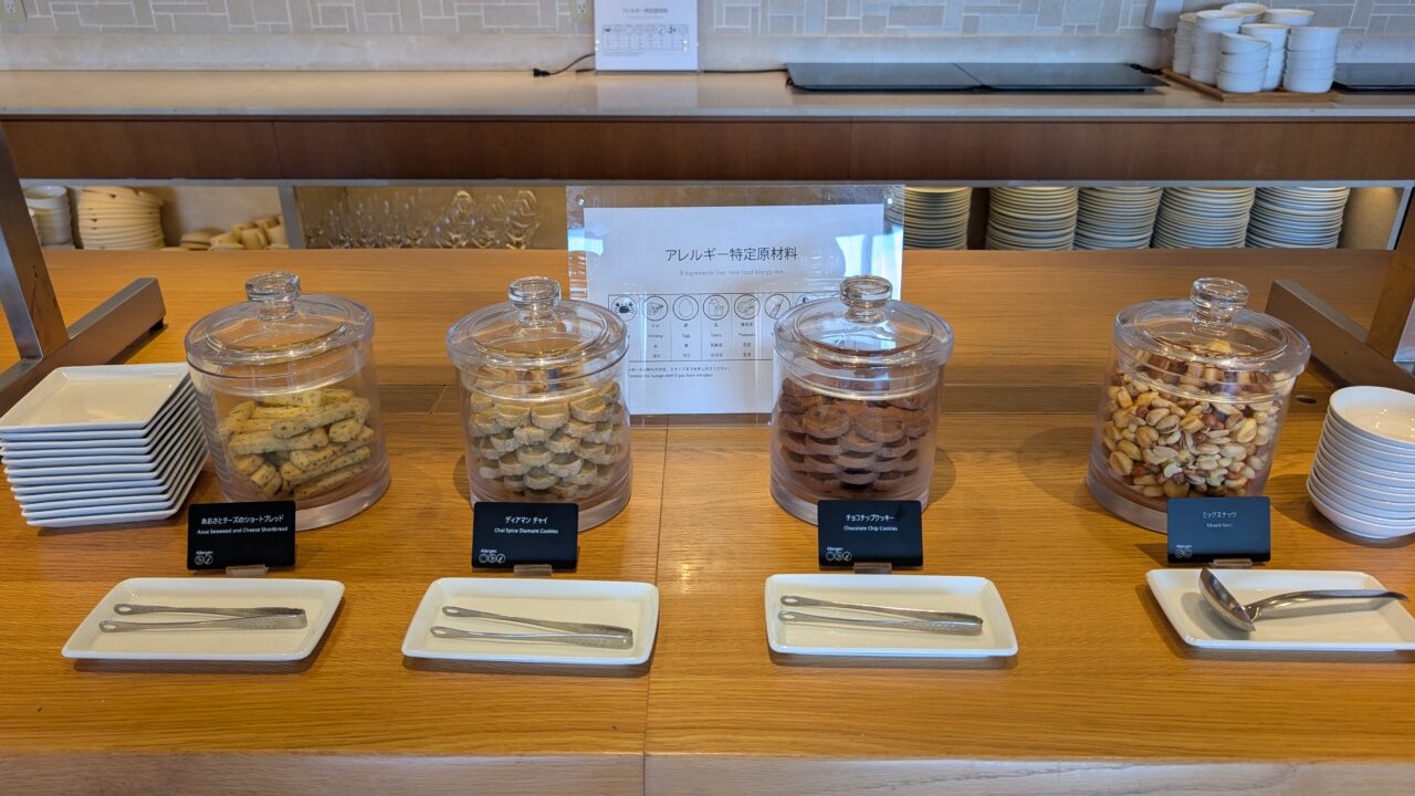 温かい飲み物はコーヒーと紅茶。保温ポットに入っているので、自分で注ぐセルフスタイル。ちょっと残念だったのが、保温ポットのお湯がぬるい。おいしいお茶が淹れられません。