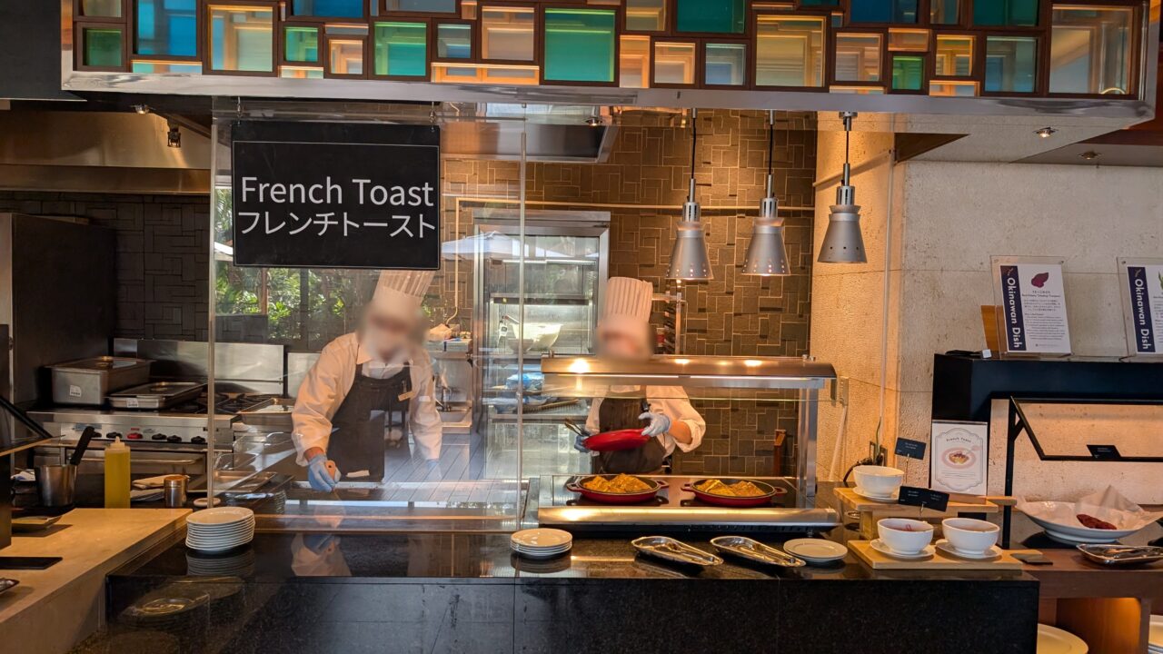ハイアットリージェンシー瀬良垣アイランド沖縄の朝食レストラン「セラーレ」は、ライブキッチンを中心に洋食・和食がバランスよく揃ったビュッフェ。