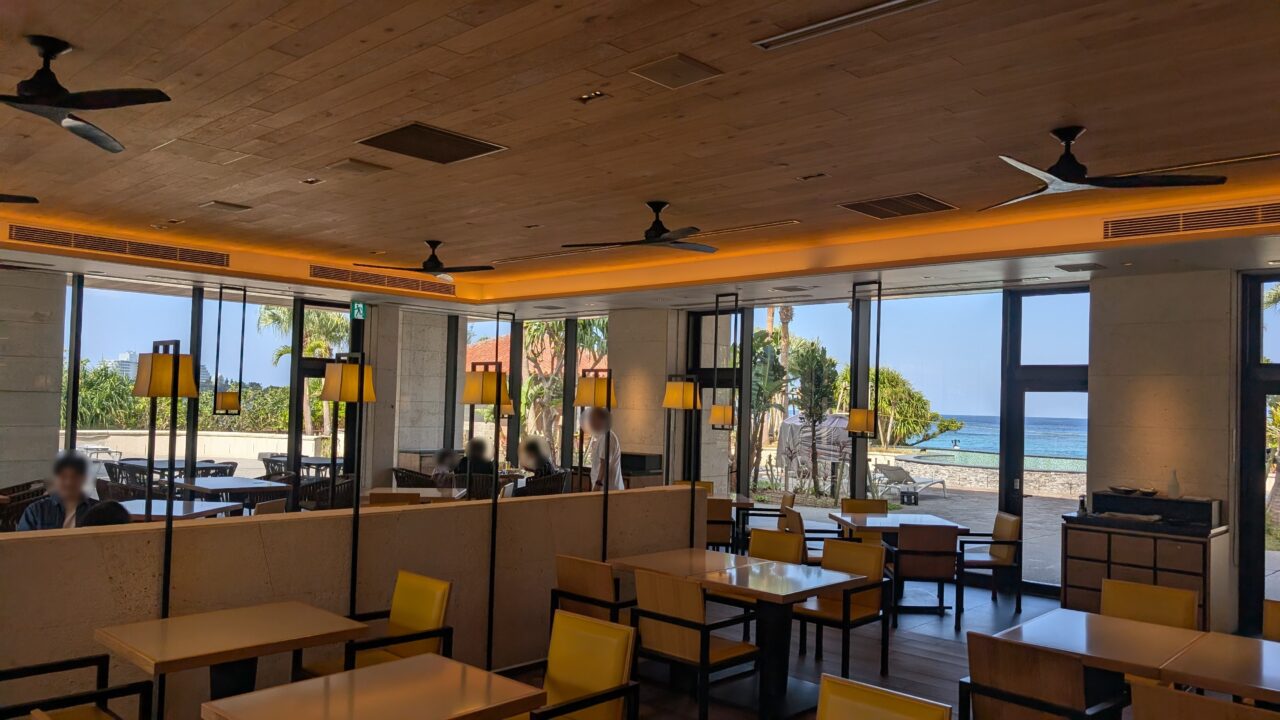 瀬良垣はロケーションが素晴らしい反面、ホテル周辺はかなり静かなエリア。 歩いて行ける飲食店はほとんどなく、外食する場合は基本的に車移動になります。 ホテル内レストランやインルームダイニングは充実しています。