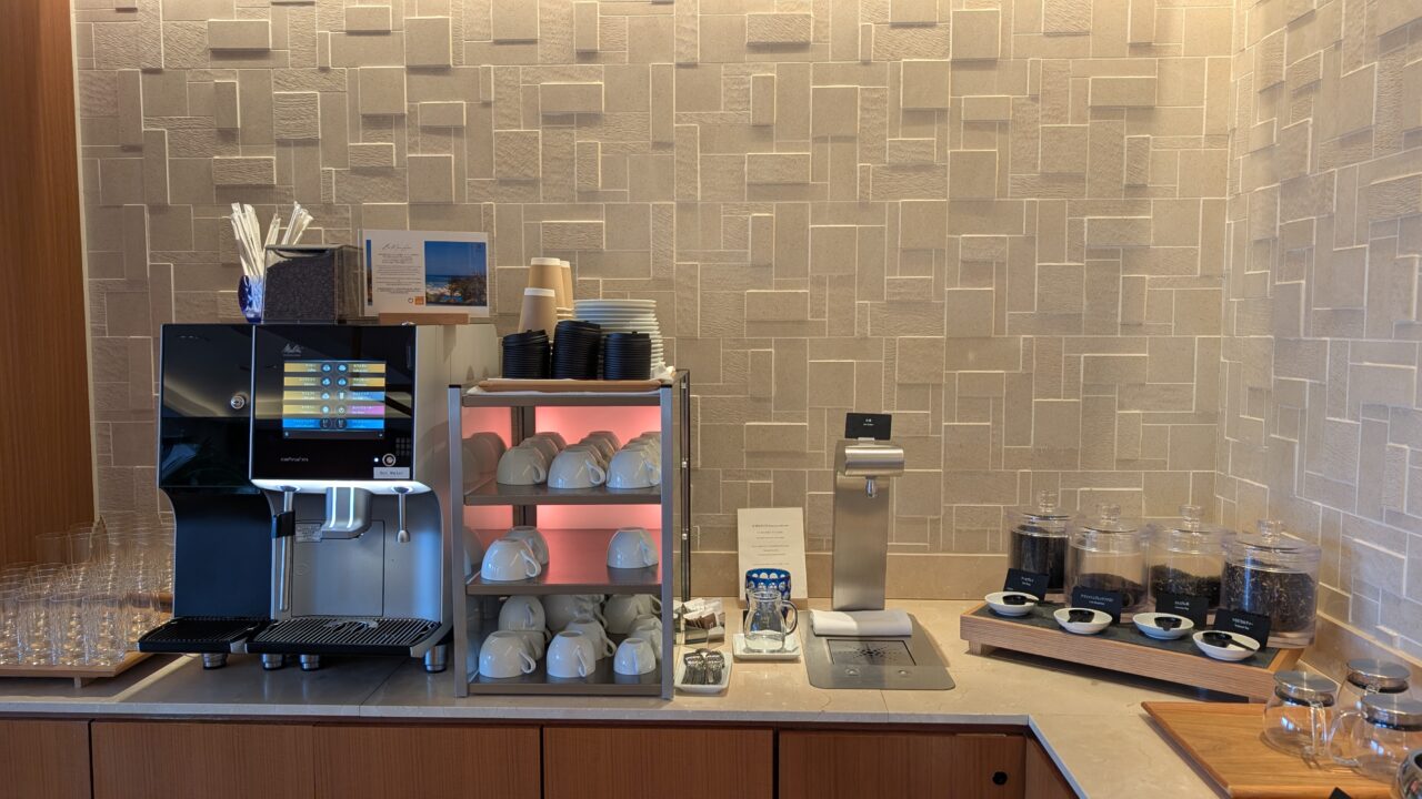 ハイアットリージェンシー瀬良垣ではグローバリストなどの上級会員は、このクラブラウンジでチェックインすることが多く、到着後はスタッフに案内されてそのままここへ。ロビーのフロントに並ぶ必要がないので、滞在のスタートとしてもかなりスムーズです。ここからラウンジに入り、チェックイン手続きを行います。