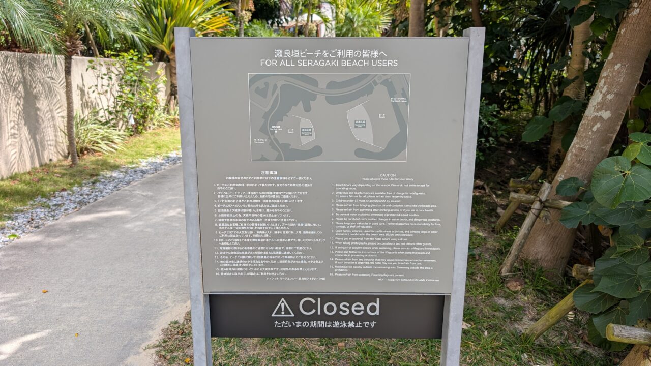 海開き前の時期だったため、残念ながら遊泳はできず。ビーチ入口にも「Closed」の案内が出ていました。