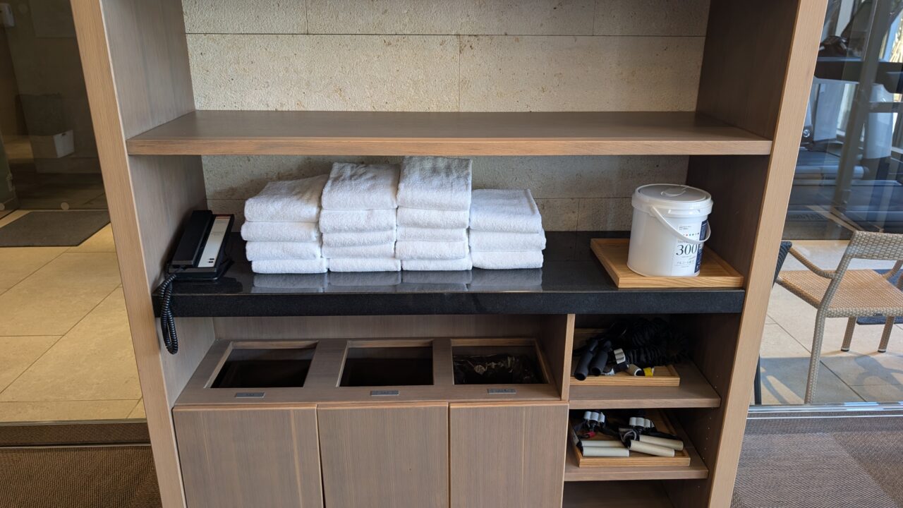 タオルやウォーターサーバーもあり、ホテルジムとしての使い勝手は良好。