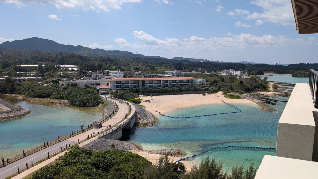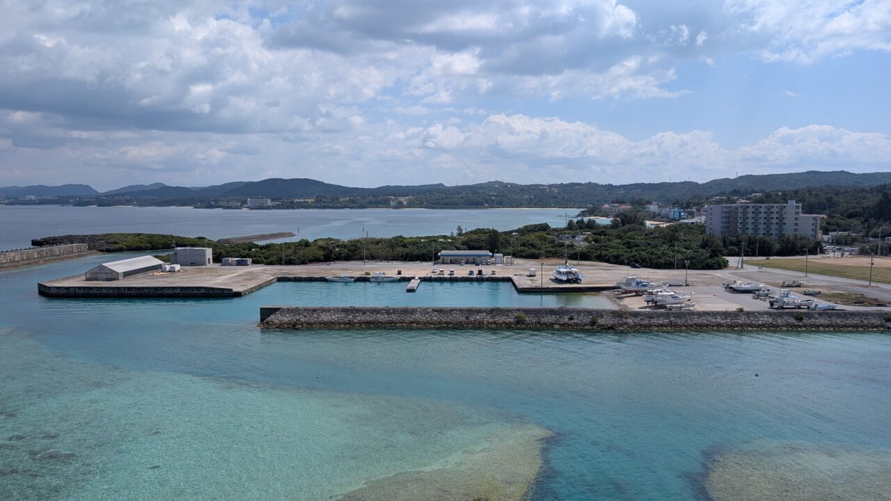 「瀬良垣ブルー」沖縄の中でも特に色が美しいと感じます。 ホテルの客室やテラス、プールエリアからは、この海と小さな港の景色が広がり、ハーバービューならではの穏やかなリゾート風景を楽しめます。 朝・昼・夕方で海の色が変わるため、窓の外を眺めているだけでも時間を忘れてしまうほどです。