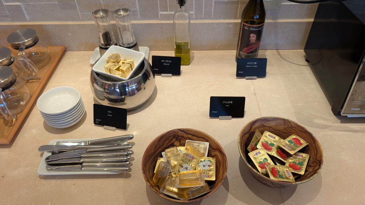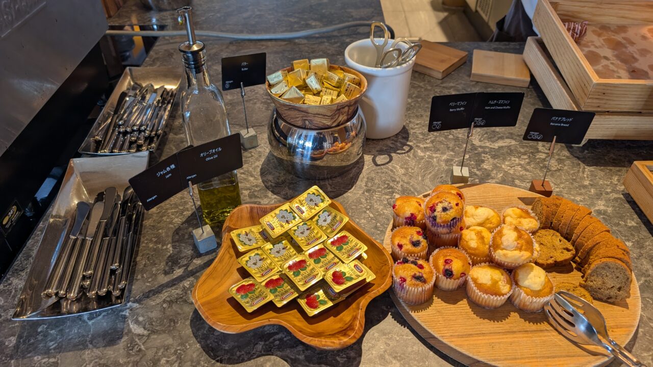 バター・ジャム・オリーブオイルといった付け合わせも充実。
