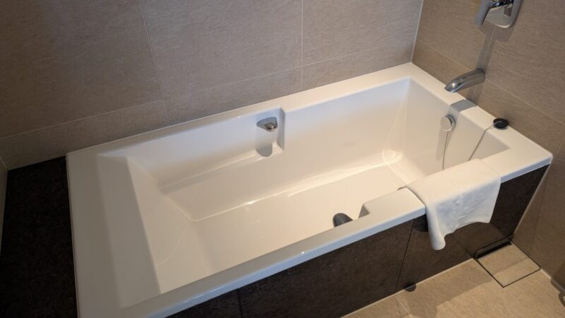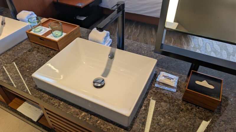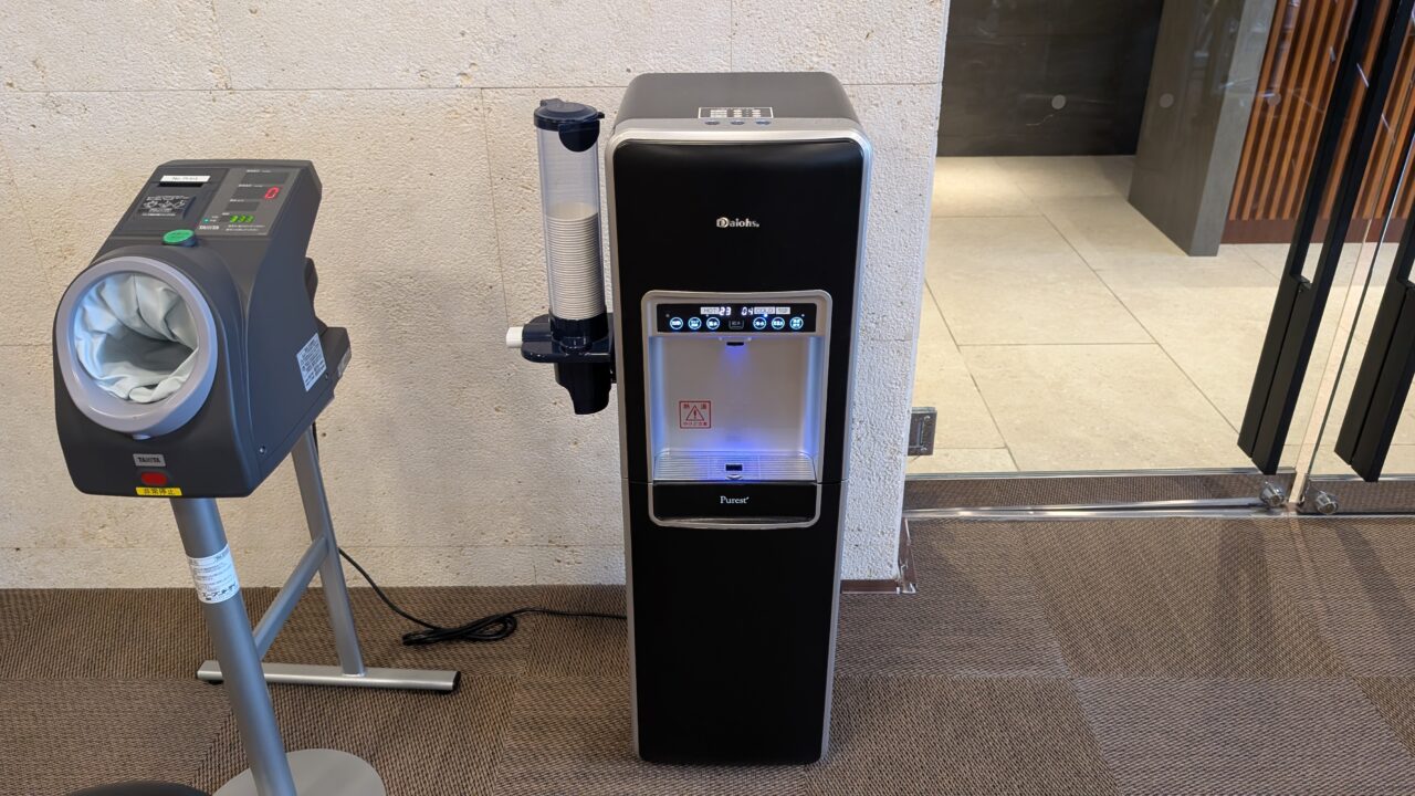ウォーターサーバーの使い勝手がやや悪い 館内のウォーターサーバーで客室ボトルに給水できる仕組みは環境配慮の面で評価できますが、 ボトルが不透明なため水量が分かりにくく、あふれやすいのが難点。 実際、サーバー周辺が水浸しになっている場面も見られました。
