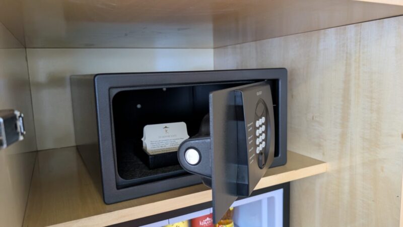 ルームキーをかざずとカチッと電子音がなり扉が開くようになります。