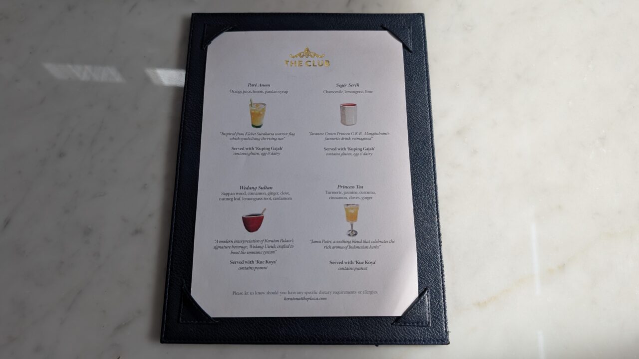 どうやらインドネシア王宮の伝統飲料「ジャムウ」に着想を得た、ケラトンならではの“王室の一杯”のようです。