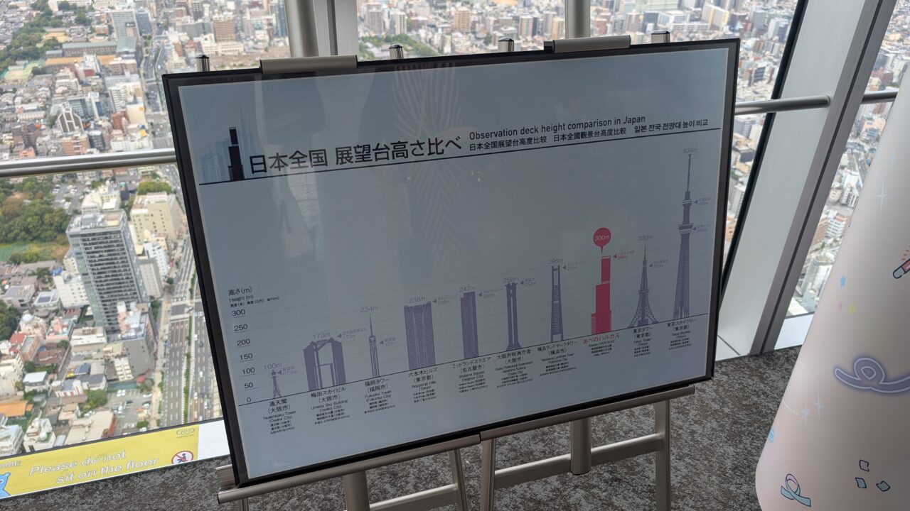 ふと横を見ると「日本の展望台高さ比べ」。あべのハルカス、ビルでは一番なのに、そこを前面に押し出してこない感じがちょっと面白い。