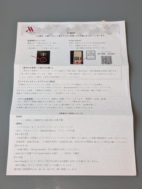 チェックインが終わって、キー一式を受け取ります。エリートカラーのキーケース。こういうところで「ちゃんと上級会員として扱われてるな」と感じます。手続き自体もスムーズ。やり取りが短くて、引っかかる感じがない。こういう部分が、地味にストレスを減らしてくれます。