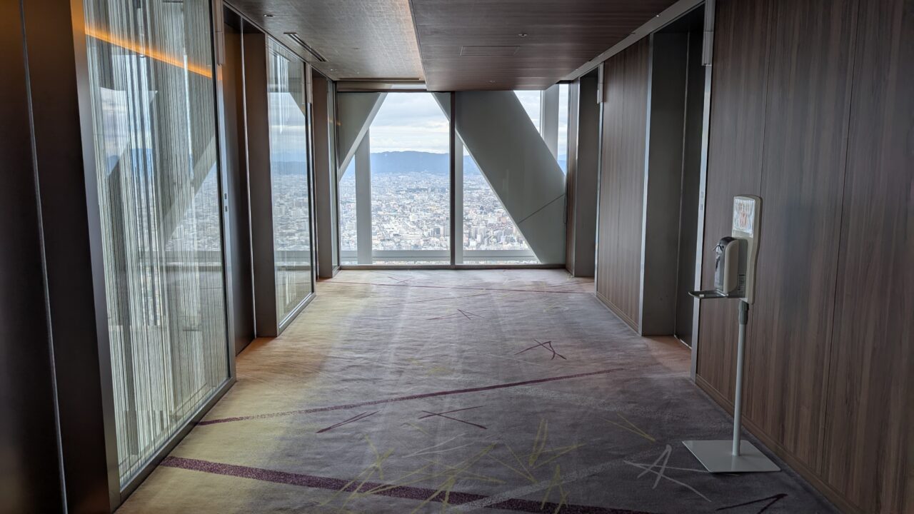 天王寺駅直結、あべのハルカスの上層にある大阪マリオット都ホテル。人の流れが多いエリアにありながら、上に上がるほど空気が静かに変わっていきます。エレベーターで一気に上がった先にあるのは、視界が抜けた景色と、余計なノイズの少ない空間でした。