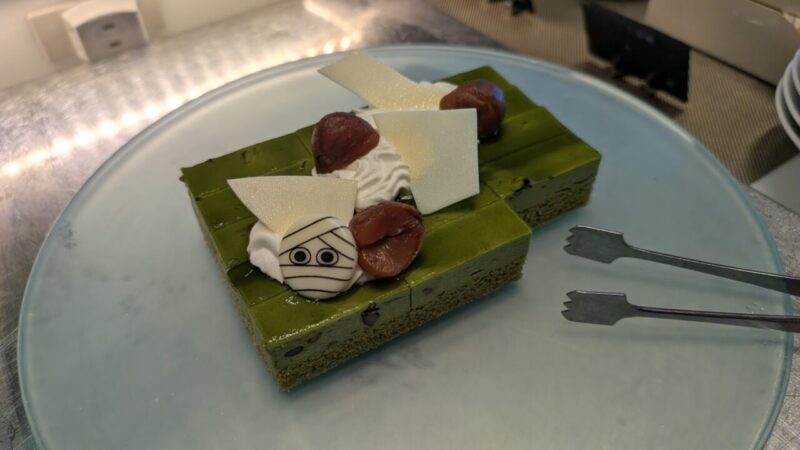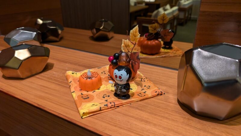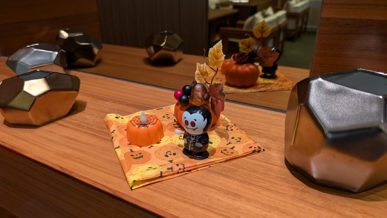 壁際にはハロウィンの装飾。こういう装飾、場所によってはごちゃついて見えることもあるのですが、ここは違います。ちゃんと余白が残っている。情報はあるのに、邪魔してこない。