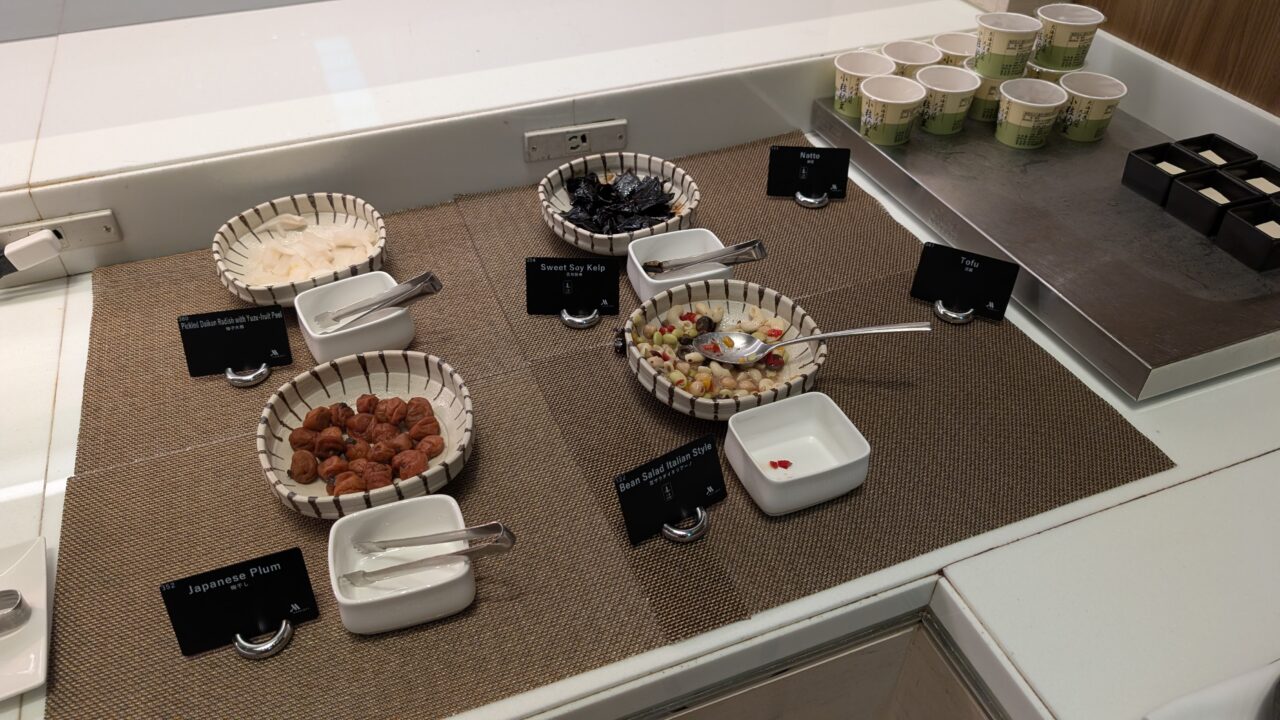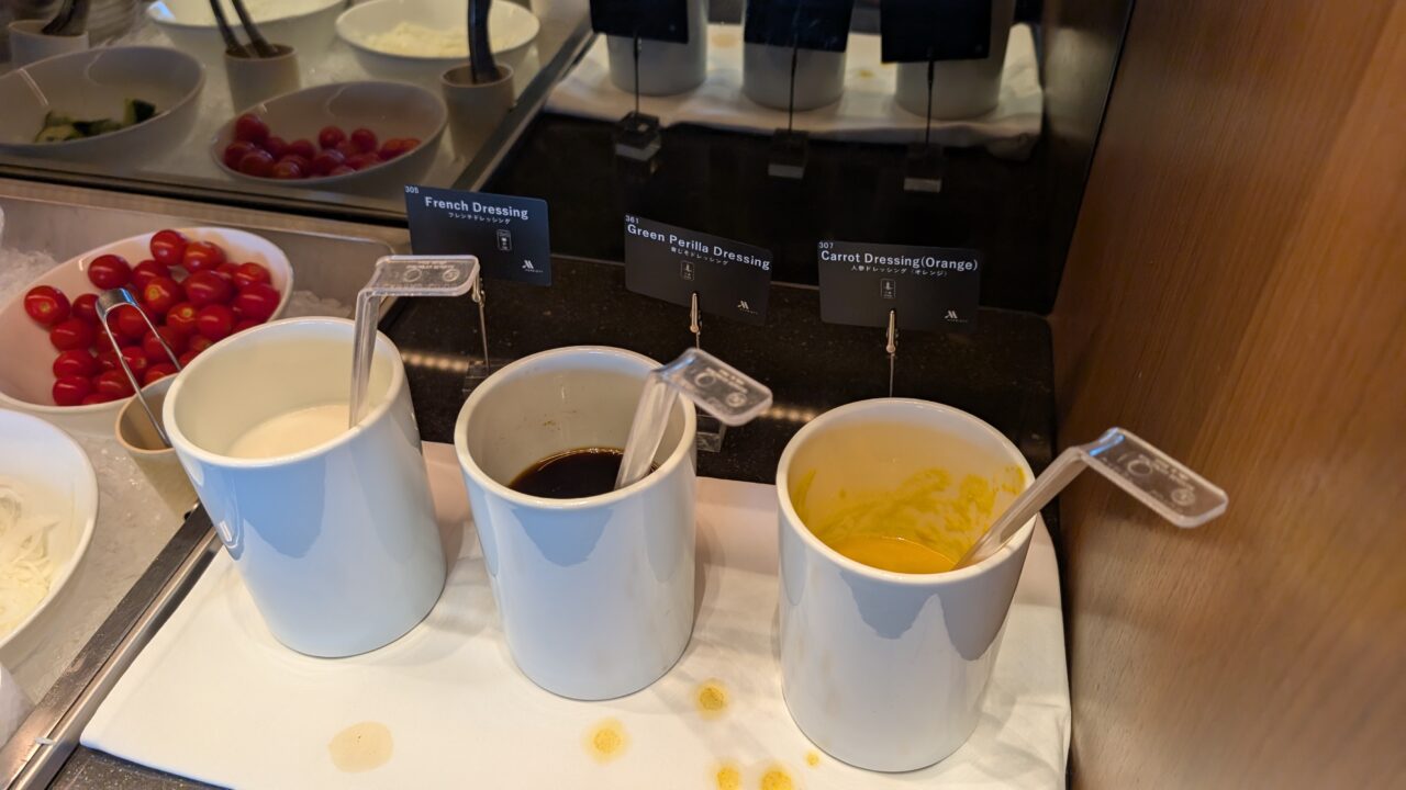 はちみつやメープルシロップ、ドライフルーツやナッツも用意されていて、カスタマイズもできます。僕はもっぱらシリアルではなくサラダにトッピングとして使います。