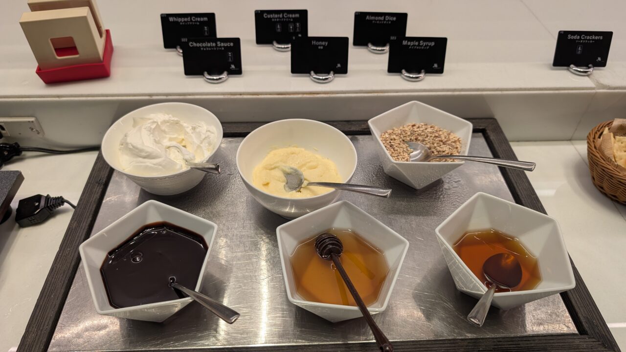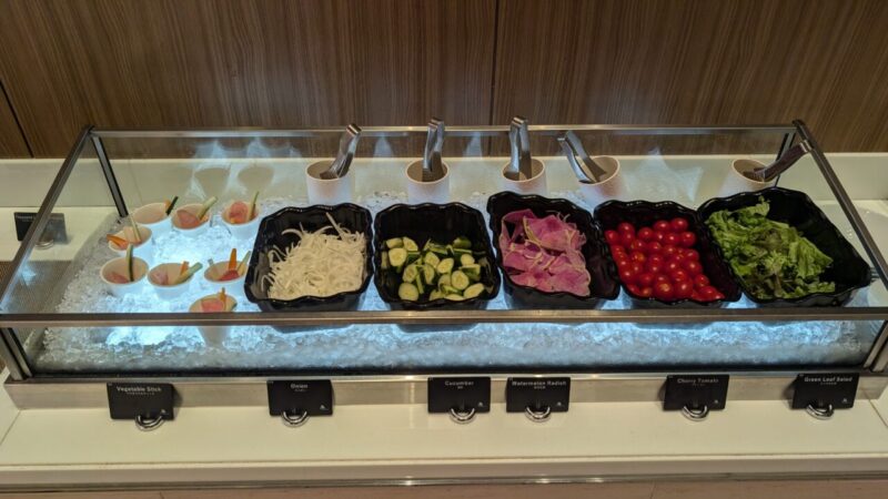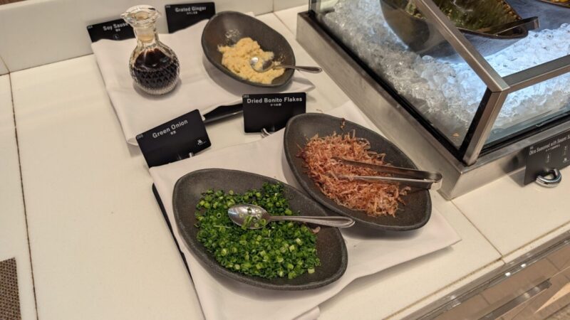 見た目はかなりいいです。整ってるし、種類も多い。ただ正直なところ、「あれ、思ったより普通だな…」ってなる場面がある。 特に一部の和食系料理は、“ラウンジとしては良いけど、期待値までは届かない”ライン。 空間や演出がいい分、味の満足度があと一段ほしいなと感じました。