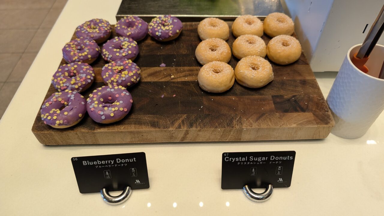 ドーナツも、ブルーベリーとシュガーの2種類。ちょっとした遊び心もあって、全体的に「選ぶ楽しさ」があるコーナーです。