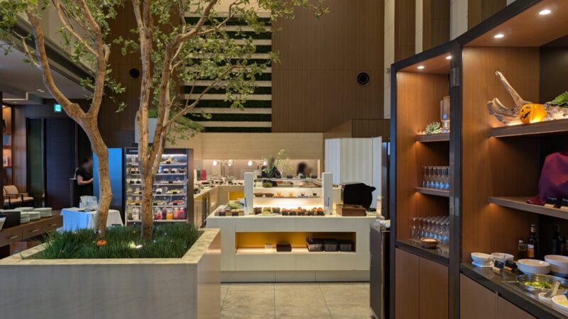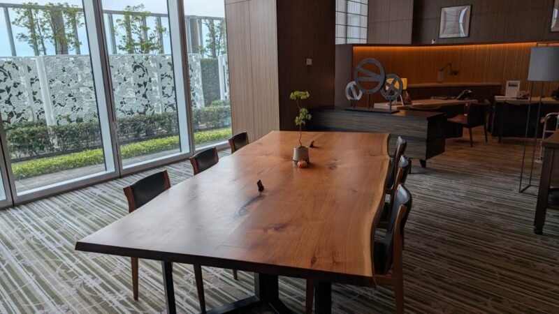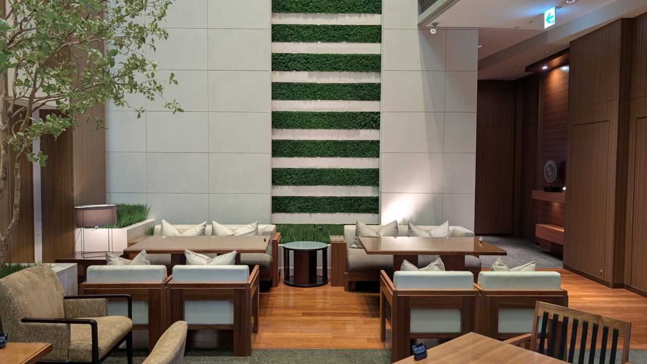 2つ目が、クラブラウンジの空間。木とグリーンで整えられた空気。人はいるのにうるさくない、長くいても疲れない。時間帯ごとに“質”が切り替わるのもいい。