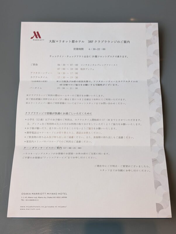 大阪マリオット都ホテル宿泊記|2025年10月|Osaka Marriott Miyako Hotel