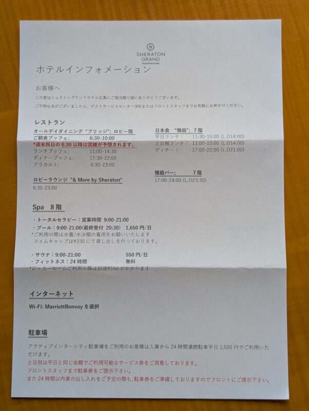 シェラトングランドホテル広島の感想