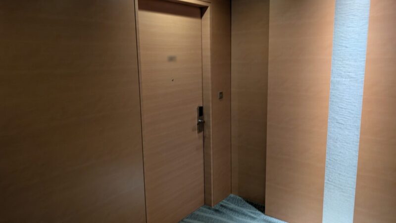 客室前。廊下の静けさのまま、その延長線上にあるような扉です。派手さはありませんが、余計な要素が削ぎ落とされています。