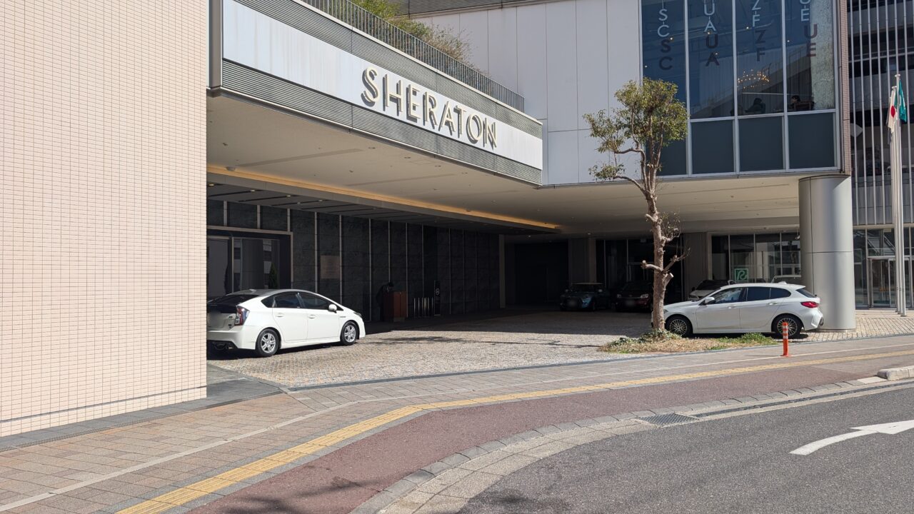 ヒルトン広島からタクシーで移動し、シェラトングランドホテル広島に到着しました。広島駅すぐという立地で、車寄せはコンパクトながら動線がとてもスムーズです。