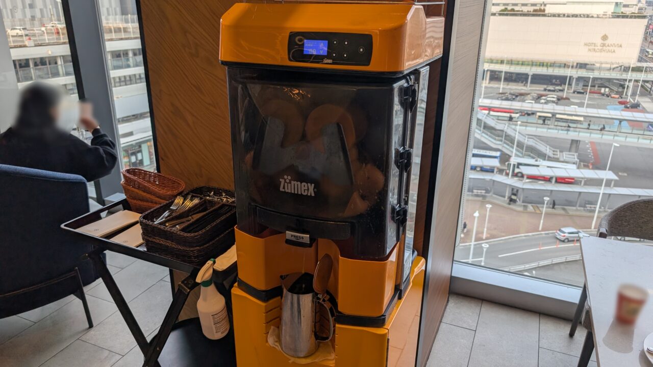 特徴的なのが、フレッシュオレンジジュースのマシン。