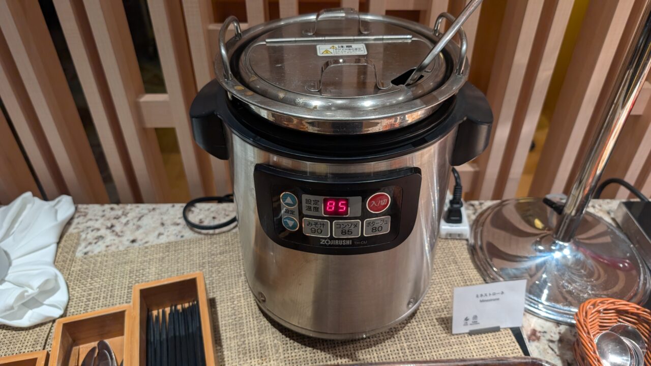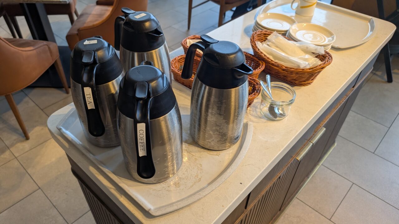 ブッフェから少し離れた席の近くには、コーヒー・紅茶のポットが用意されていて、わざわざ取りに戻る必要がありません。