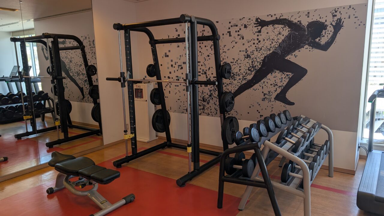 フィットネスセンターは、広さとしてはコンパクトですが、日常的に体を整えるという目的に対しては、必要なものがしっかり揃っています。